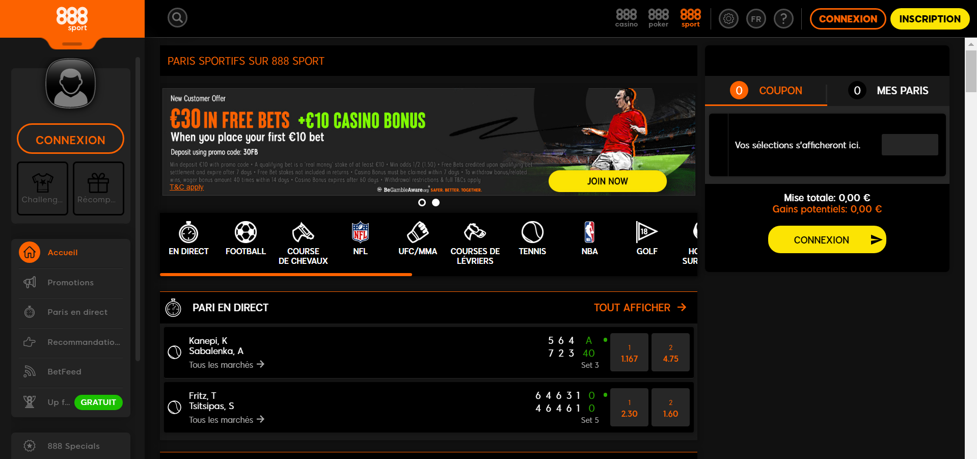 888sport en direct, des paris en suivant le match